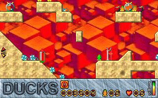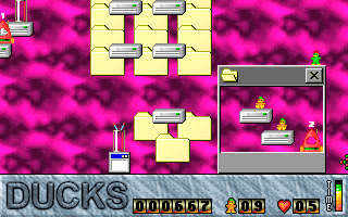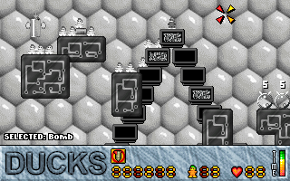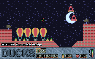 In 1998, a man called Tim Furnish, known also as Hungry Software, made an indie game for DOS called Ducks, a game similar to Lemmings. It also came with a level editor, and I made quite a number of level sets.